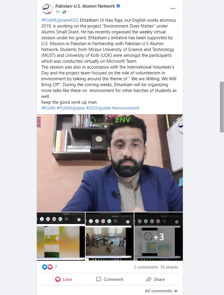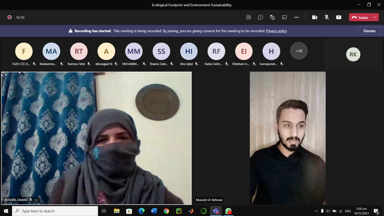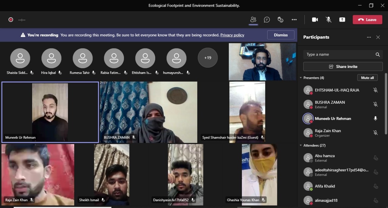 We are going to have some advantageous sessions in Azad Kashmir regarding environment. The number of sessions would be approximately 30. We would invite our public and students to attend these sessions.